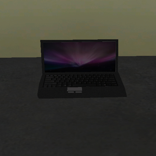 A basic black laptop model with a unbranded wallpaper image, good for any office scene.
